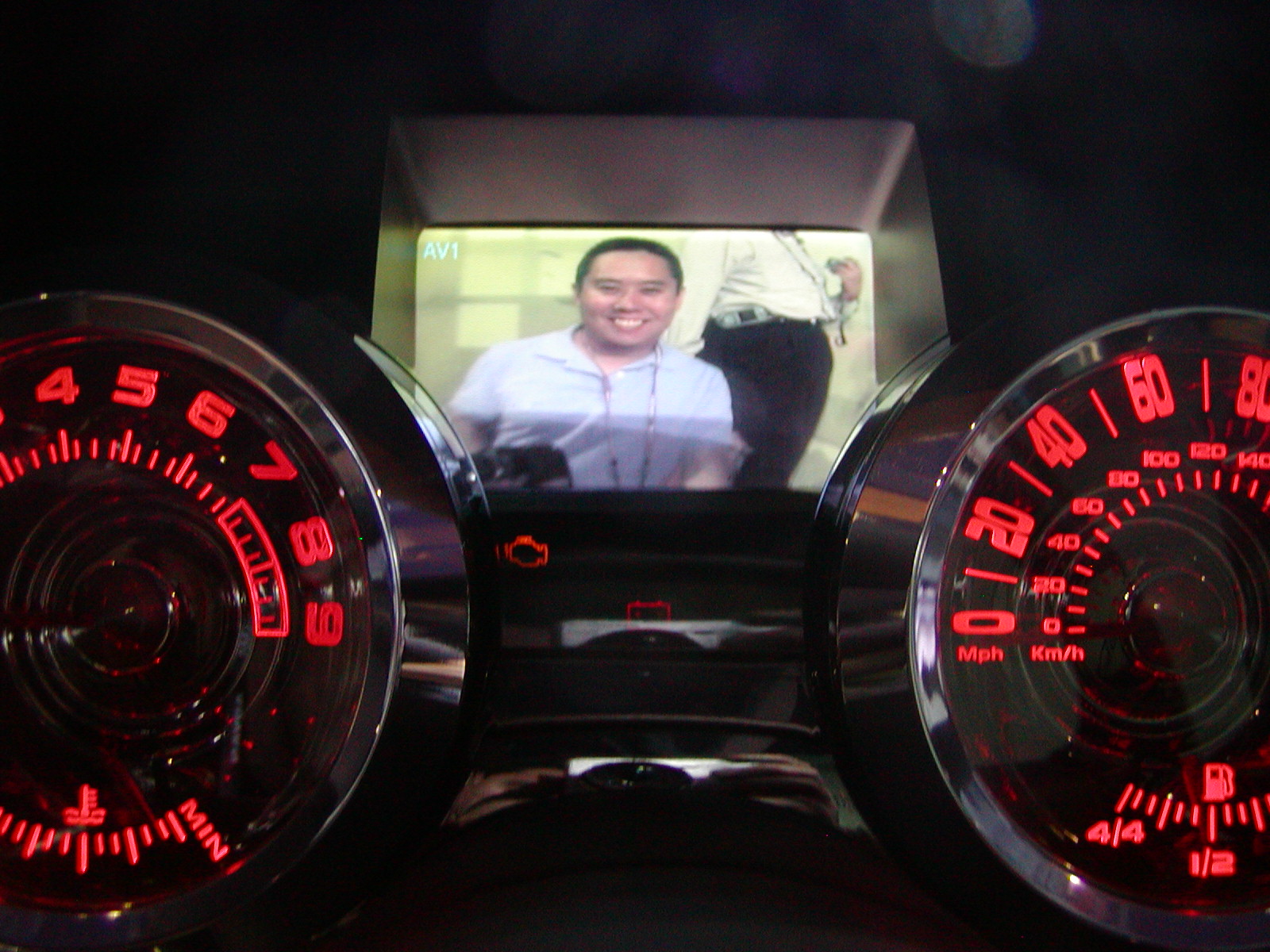 Here's a pic of me in the rearview cam on the concept Mustang (Richard took the pic).