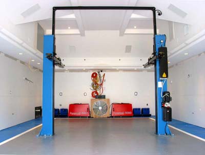 His last garage had a pit, but he says they are a pain to clean and you don't need one with a 20ft. high garage and a lift.