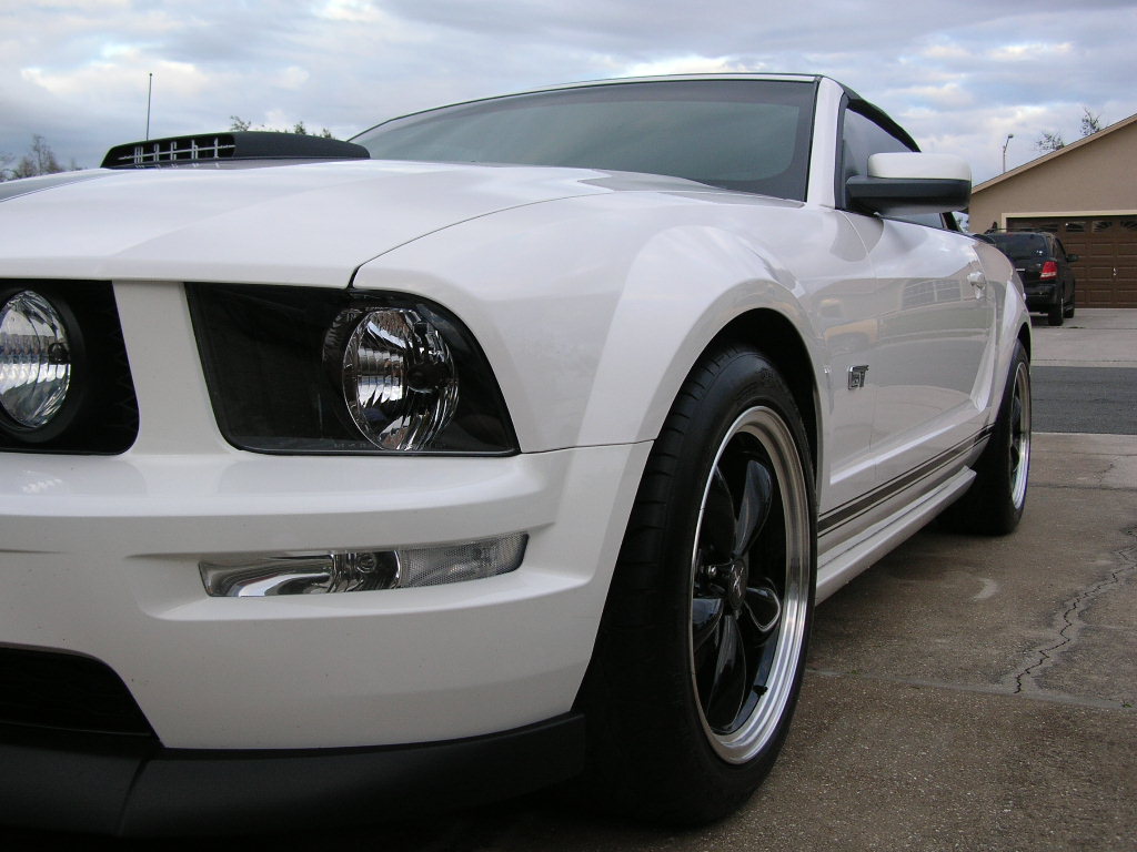 Here are some washed and polished pics. I gave up on Zaino since it's so hard to see on a white car. It's too much work for too little difference. I just use something like that "Wax as you Dry" stuff, but what I have is made by Dupont. After I blow most of the water off the car and out of the nooks and crannies (like the grille and the SilverHorse Racing rear panel), I just spray this stuff on the car and wipe it off as I finish drying.
