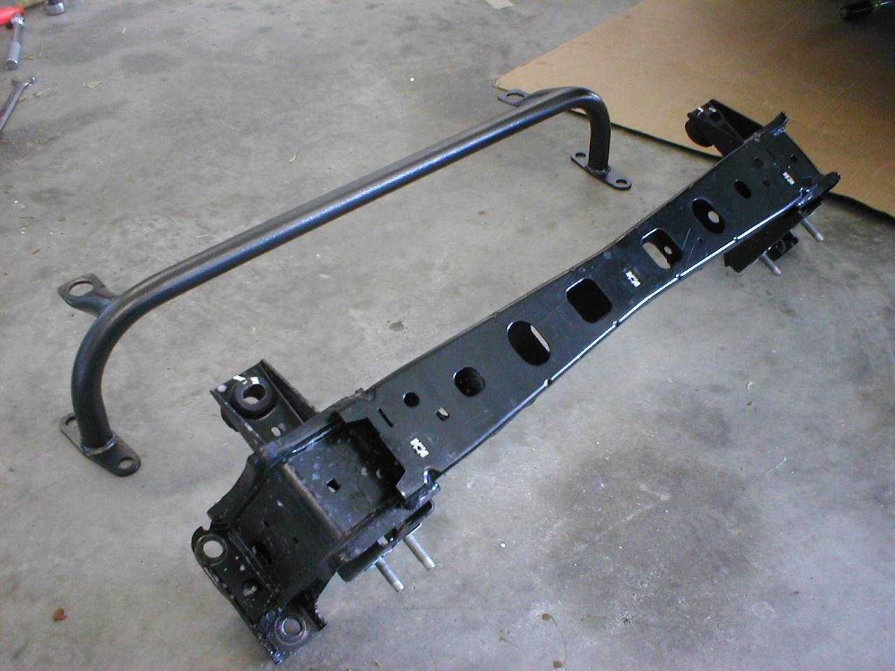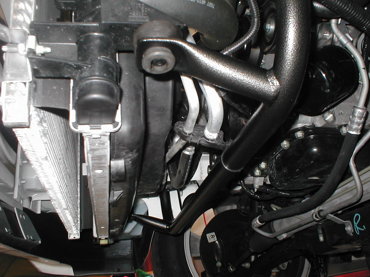 Just to make sure you know - you have to remove the swaybar, too. Lately, I've been referring to it as a "radiator brace", which is all it is right now. The stock piece also holds the swaybar and takes all the forces acting on it from the swaybar (that's why it's so big and bulky - and heavy).