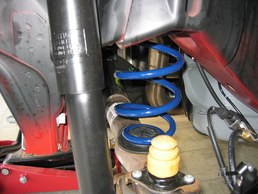 So, dumb or not, I re-lowered the rear axle and rotated the springs that way (the vert braces were still off, so it was easy).