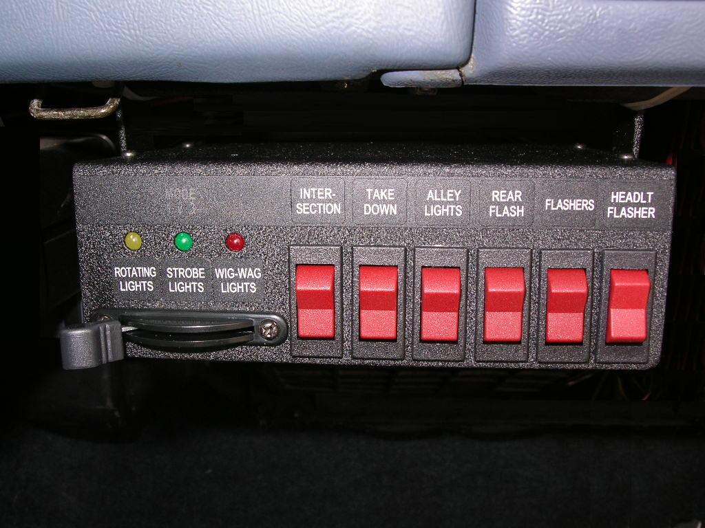 On the left is the "pursuit switch". So I figured these would be the things that would come on during a chase. So, 3 of the 9 functions are as follows: