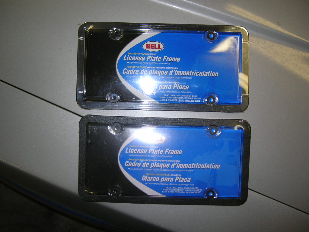 I have two new frames still in plastic, 1 chrome, and 1 black... both have the clear plate cover:
