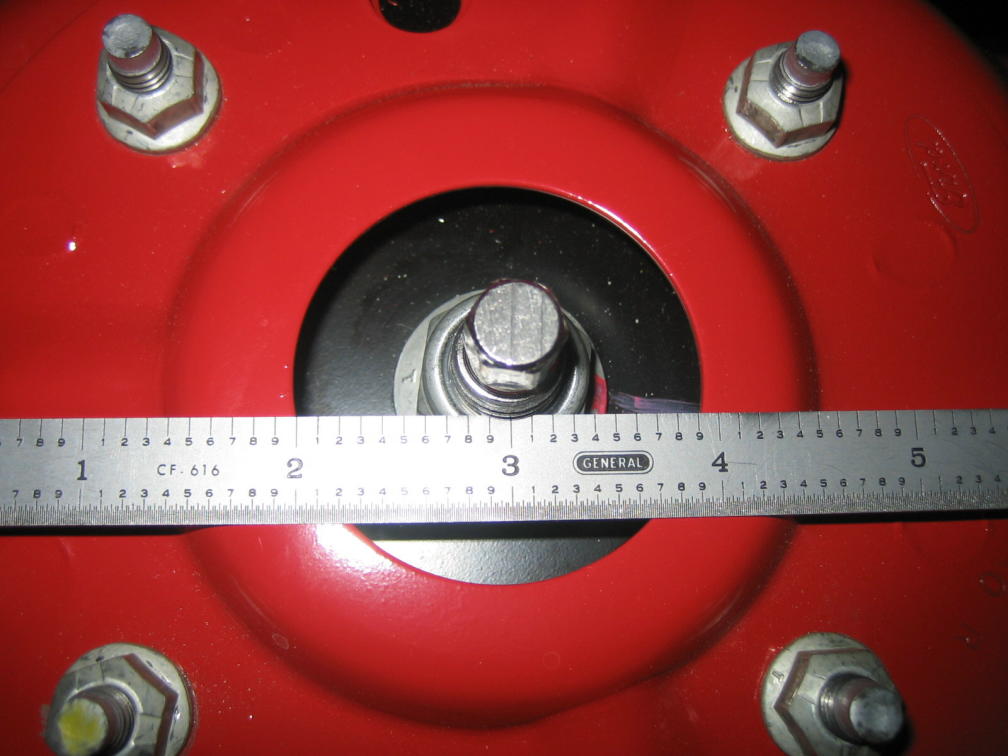What I did for measurements was lay the metal ruler on edge against the exposed threads on the middle stud and measured to the edge of the circle (only for inboard and outboard). Forward and backward would be for caster, and the center stud is still very close to being centered that way.