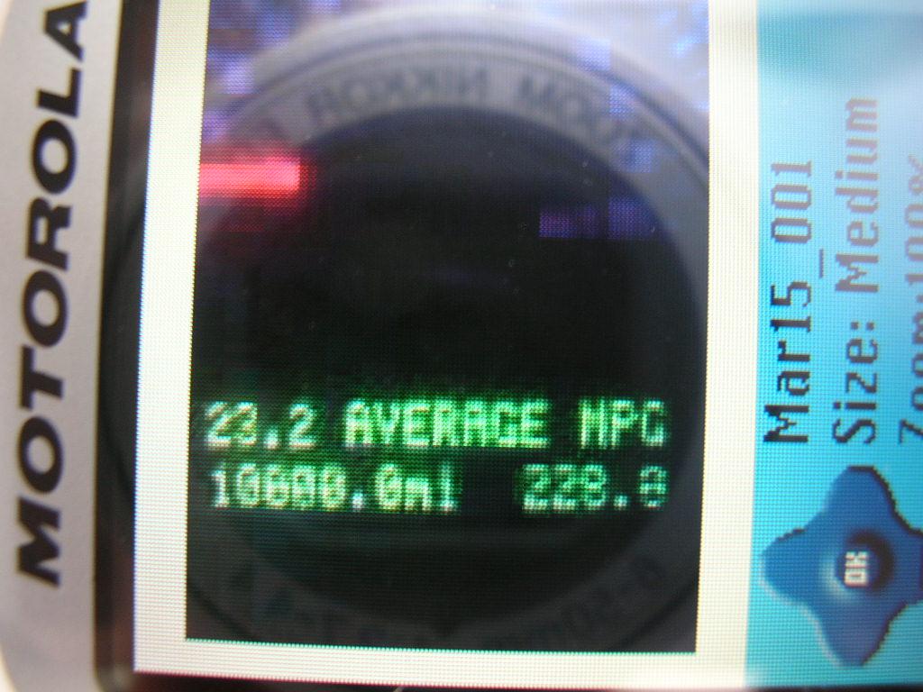 I just turned 10,000 miles on the way to work this morning. I was stopped at a light and took a picture with my cell phone. Then I just took a picture of my cell phone with my camera. Turned out pretty good (got a date stamp, too):