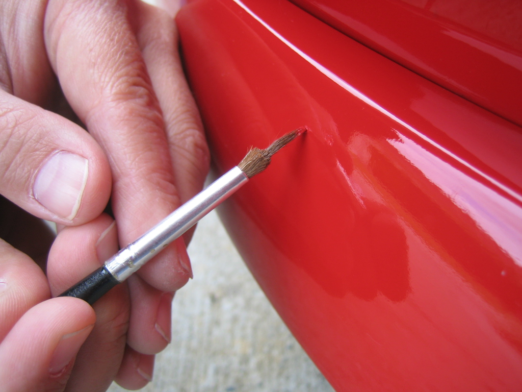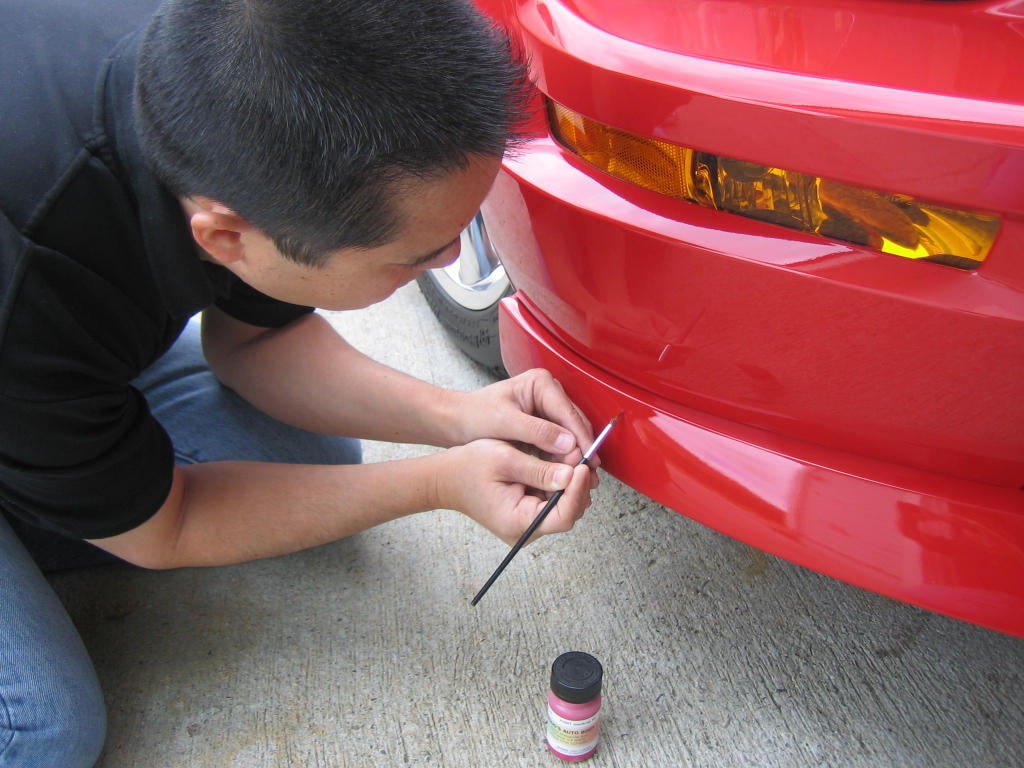 It was a matter of time, can't help from getting chips in a painted lower spoiler. Did my best to touch it up, turned out better than the yellow beneath the paint.