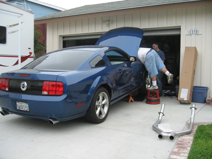 Well, I'm now illegal. Put the Pypes O/R H-pipe on the car with the help of Bill, Leo and Kevin. Tons of thanks guys I couldn't have got it done without you. My initial reaction is