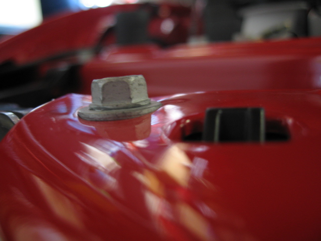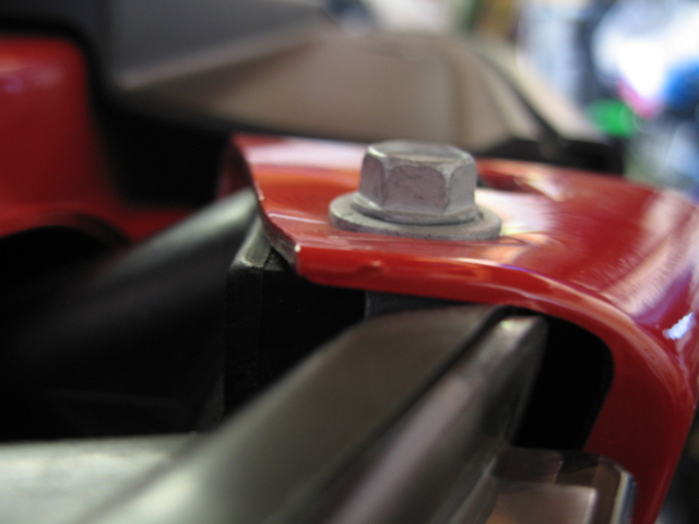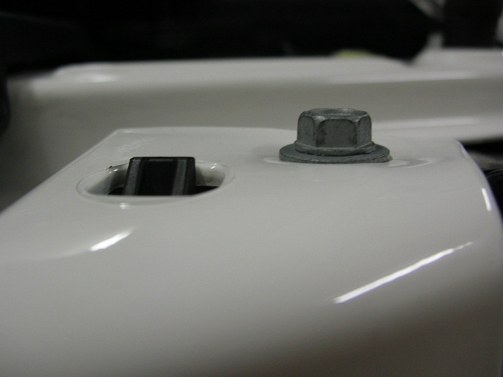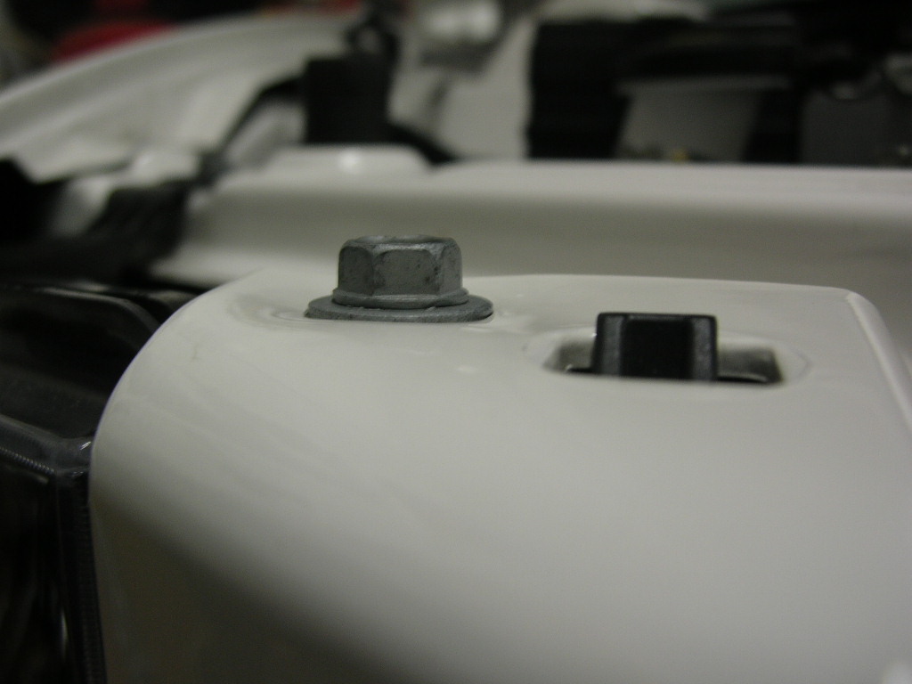 Can somebody check the following for me on their car? Are the bolts circled in the following picture really tight? And if so, do they warp the little part of bumper cover that comes up? I put the stock bolts on the same marks that were there when I removed them, but they seem to really crank down on the white (in my case) part. They have to be tight, so I'm sure it's just something I didn't notice before, but I wanted to check. Hopefully ya'll know what I'm talking about.