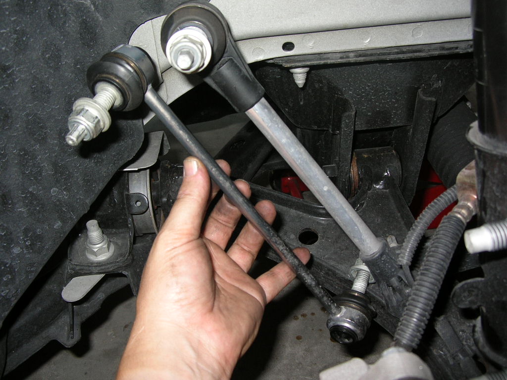 I found another change from '05 to '06 (Mike's '06 got some left over '05 parts). Look at the difference between the front sway bar links (I'm holding mine since it is out of the car now):
