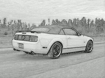 Try as I might, I can't get the car as grainy and looking like a sketch. I was doing the same thing - turning it to B&W and messing with the 4 things you mentioned. Maybe because the car is white and not black I can't get the same effect?