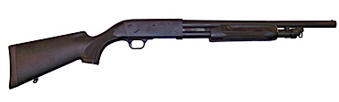 It's actually a Remington 870 Police replica. It's a real shotgun, shoots real shells, and is identical to the real Remington 870. The only way to tell it's any different is to take it apart and see it's made with metric hardware instead of SAE hardware!