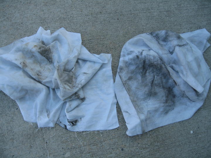 Rag on left was from the engine bay (see, my engine does get dirty, although I have no idea how! ), right one was used on the wheels. Attachment 30314