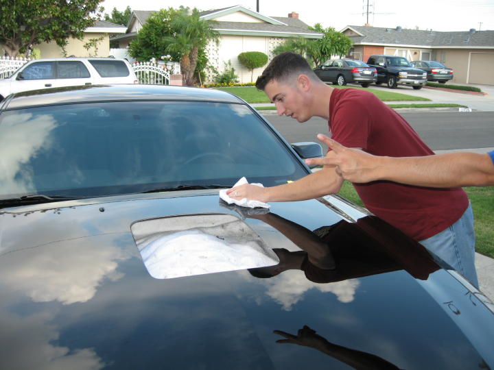 Leo and I started on his hood stripe and rear blackout panel project today.