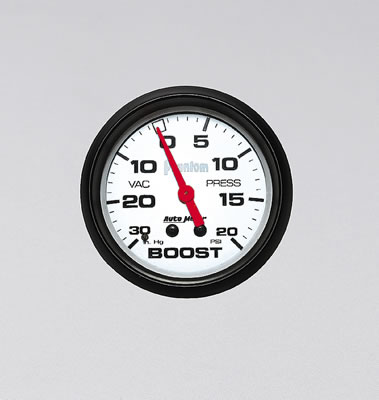 I think I'll get a Boost/Vacuum gauge. If I only have 8psi, it seems dumb to have a gauge that goes up to 30 (that's the lowest I can find). This one goes up to 20, and I can watch the vacuum, too: