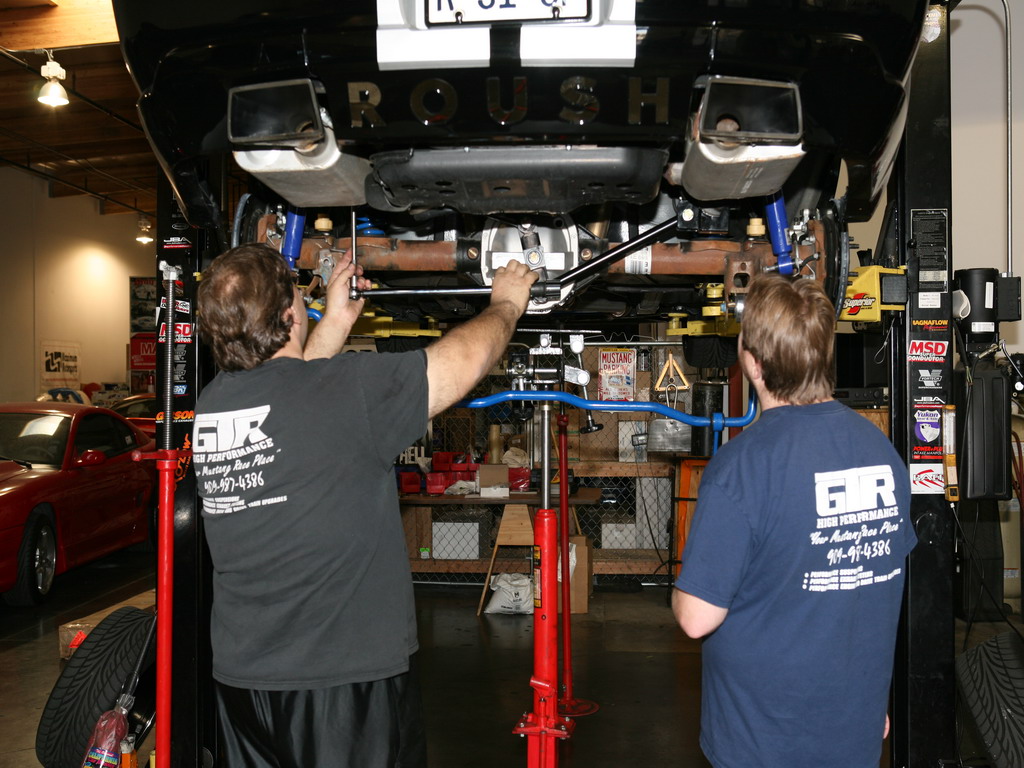 They installed the Watts Link system, Aluminum drive shaft and my MGW shifter. Wow the Watts Link lives up to its performance. The car feel alot more stable with no lean. The only thing leaning now is the driver! I noticed that my off the line launch is much easier with the lighter DS. The MGW shifter ROCKS, It's adjusted to the mid point (5 turns) feels just right for JED!