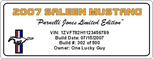 I asked if he could replace "bullit" with Mustang GT and replace vehicle # with owner and build date.