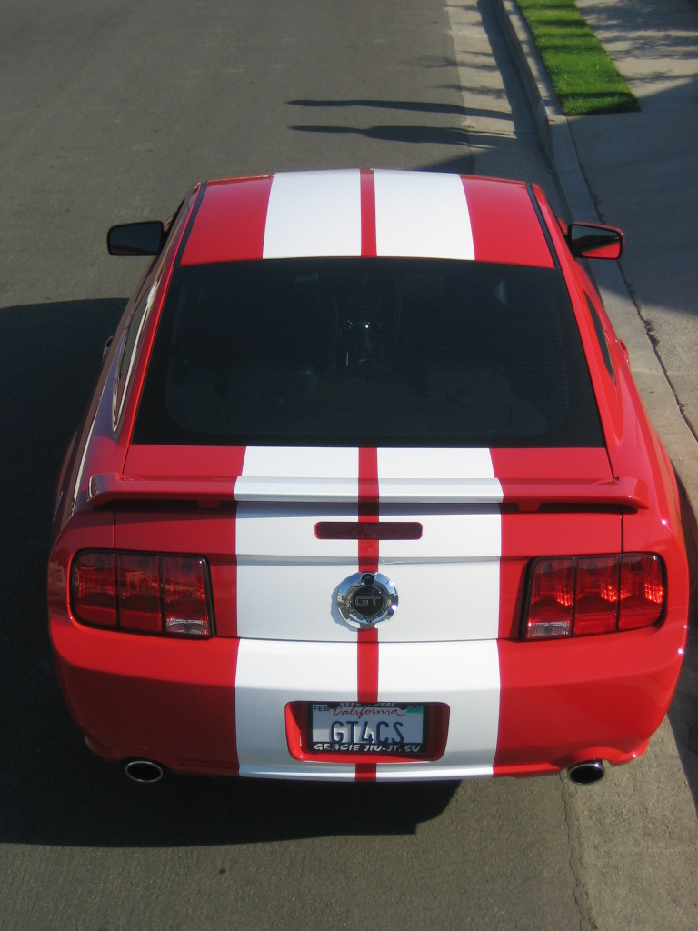 I need opinions on a black spoiler. The 2003 & 2004 Mach 1's had a shaker, black graphics on the hood, a black chin spoiler, a black stripe down the side, and a black spoiler, regardless of the color of the car:
