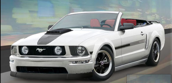 Thanks for the chop! I hate to be picky, but I think I would have the side stripe lowered toward the center of the door like in the GT/CS shot in my post above. And I would have the hood graphic more like the Mach 1 above. So, I'll be waiting for the modified photochop!