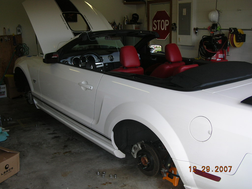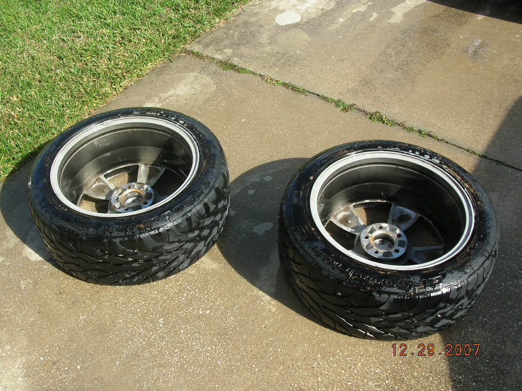 I decided to test the Roush forged rims with the BFG KD's here's a side by side with my original tire (left). Both tires are 275 40 18, however the tire on the right sits in a 10 inch rim unlike my 9 inch black chrome. What a diffrence an inch makes. When I took off my rims crap GTR torque them way to much I think the range is 85 - 105 Ft Pounds these felt like they were 175+. Why do shops feel that they have to use the impact for everyting. Hello T-Wench! I understand dissasembly but that's it. I actally broke a 1/2 to 3/8 adapter WTH!