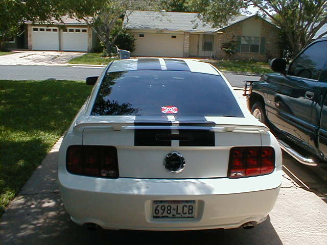 Thats as far as I`m going in the back. It origonally came without it going over the rear trunk , but I cut a little piece from the scratched ones , and brought it down to the end of the lid. Had to cut out the 3rd brake lite with a exacto knife. I suck doing that. Looks crappy up close , but I`m **** anyhoo. I thought i might find a 3rd brake lite bezel thats black and all will be well. It`s the front one that has me going and I dont want to start slicing and dicing. Every time it sits in the sun , more bubbles appear.