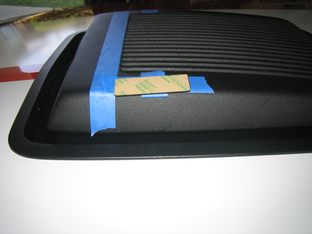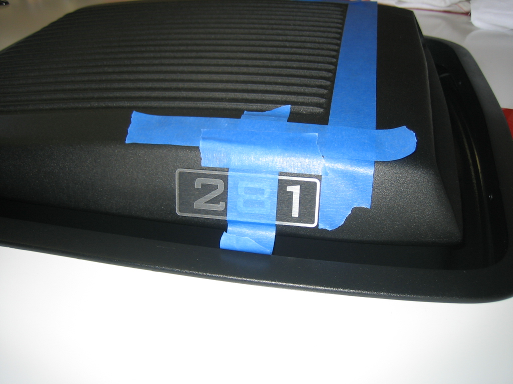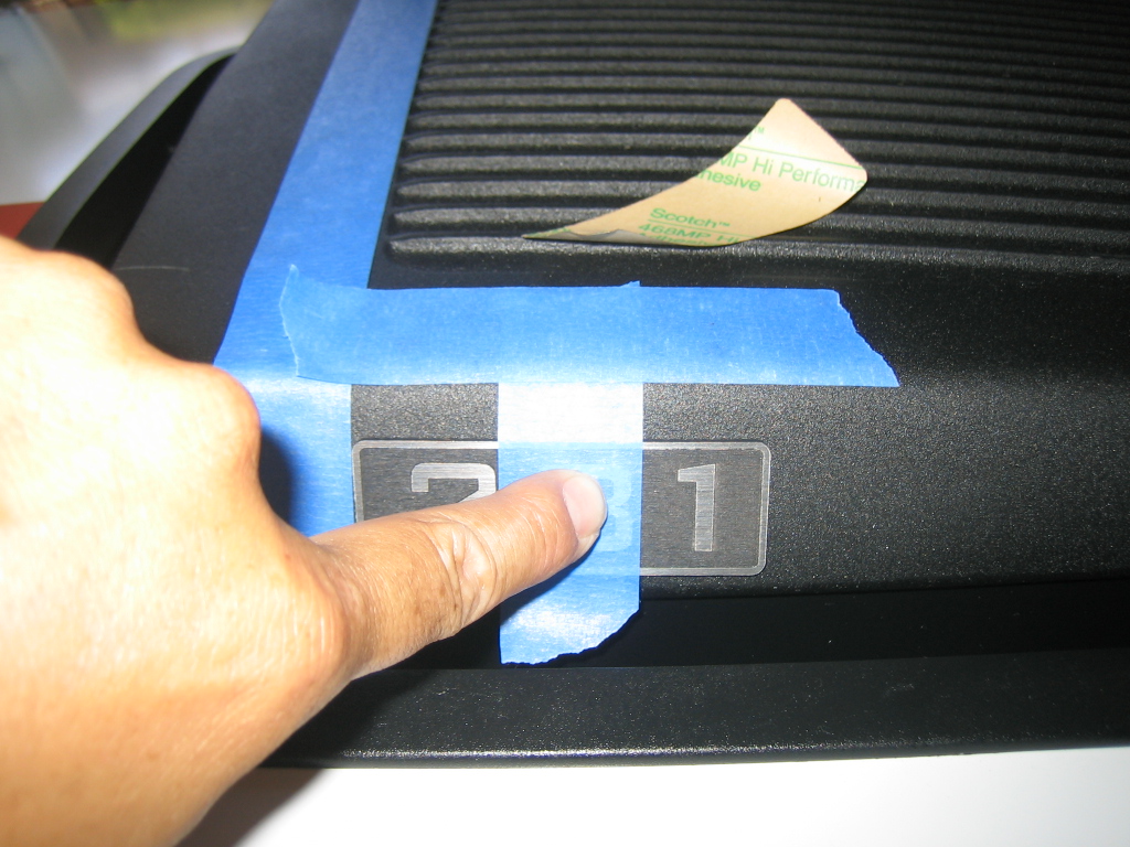 * Place the emblem's forward edge against the masking line using some tape to hold it in place. Up/down location as well as clocking (leveling) should be done at this point as well.