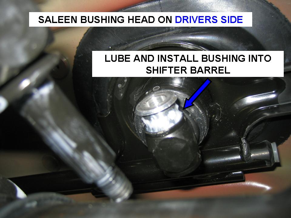 * Lube the Saleen silver bushing (outer) before inserting it into the shifter barrel.
