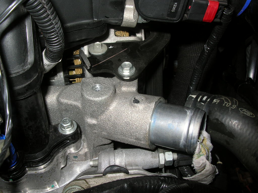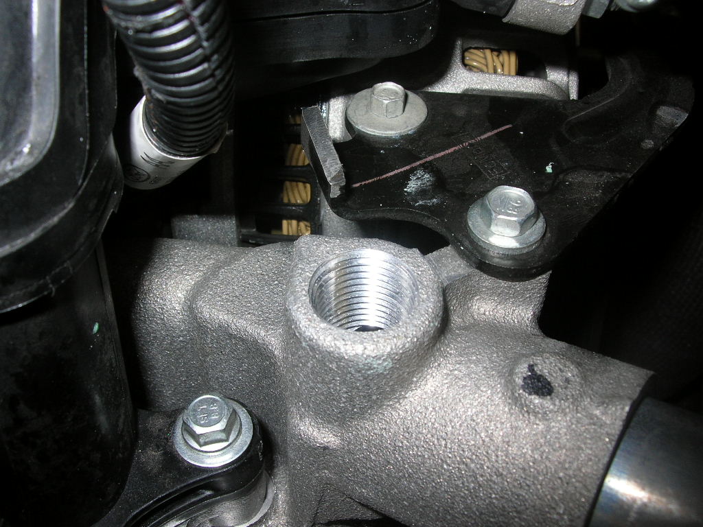 Attachment 40179 Here's the boss where the fitting will be installed. Should be very accurate since this is where hot water leaves the intake to go over to the radiator.