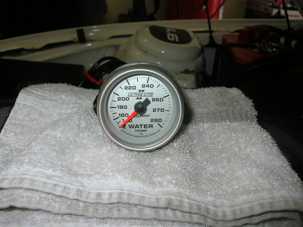 Attachment 40185 Here is the gauge. I didn't take a picture of it with the coolant hot, but fully warmed up it read 182°. I was told it would go up to 195° on the street. I'm returning this gauge and I'm going to get the one that goes from 120-240... that will put 195-200° right at the top center of the gauge.