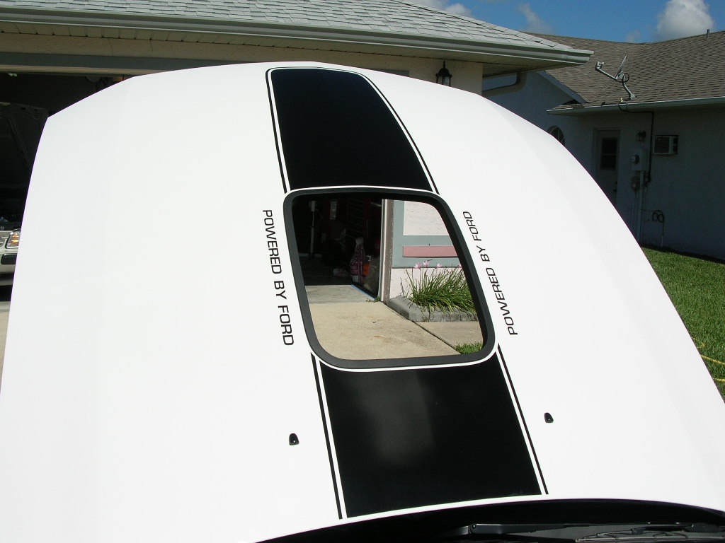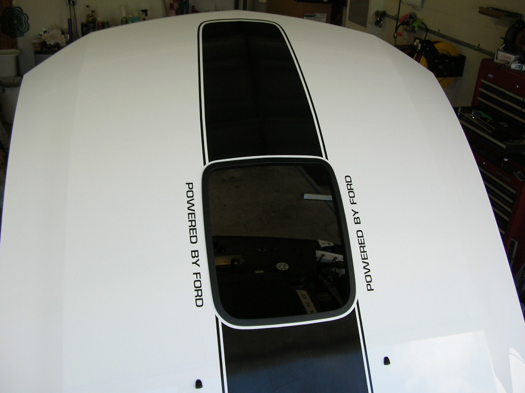 Here we go... I uploaded 19 pictures of the graphics at different angles and distances. The one shot of the hood open with the red text shows where I will trim to make the gap even all the way around. Most people would probably be happy with the way it is, but since I'm so picky I'll have to trim it.