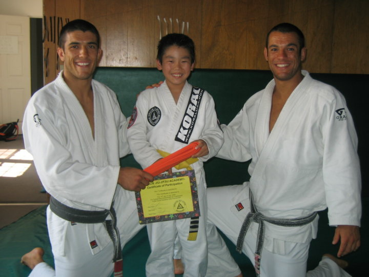 Here's Chris flanked by the Gracies, Rener to his right and Ryron to his left.