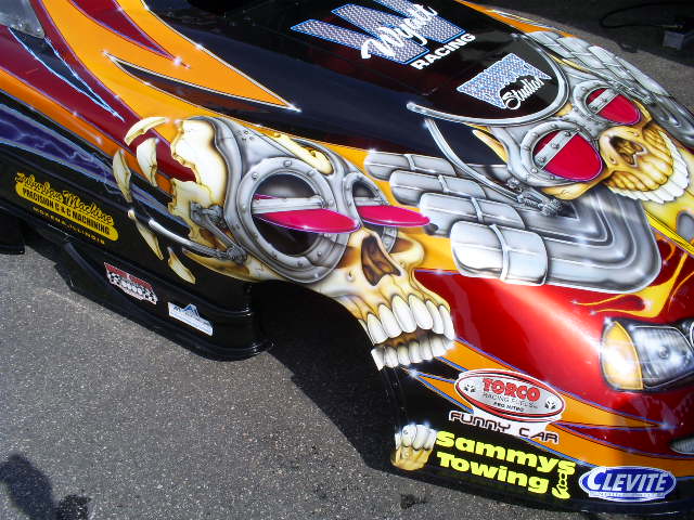 couple from the pits, including a stretched caddy limo, and a cool paint job where the skull's eye sockets were butterfly's from a supercharger