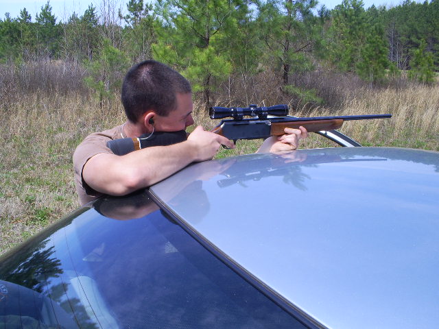 This is me at my "gun range" also known as a huge crop of land, and a target board in the distance, the second one is a buddy of mine