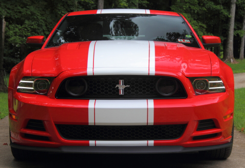 Installed Boss 302 grille, Roush chin splitter, tinted the fogs and Plastidip'd the deck lid panel.