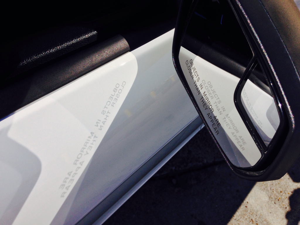 The decal that should go on the driver's side mirror is the one that reads