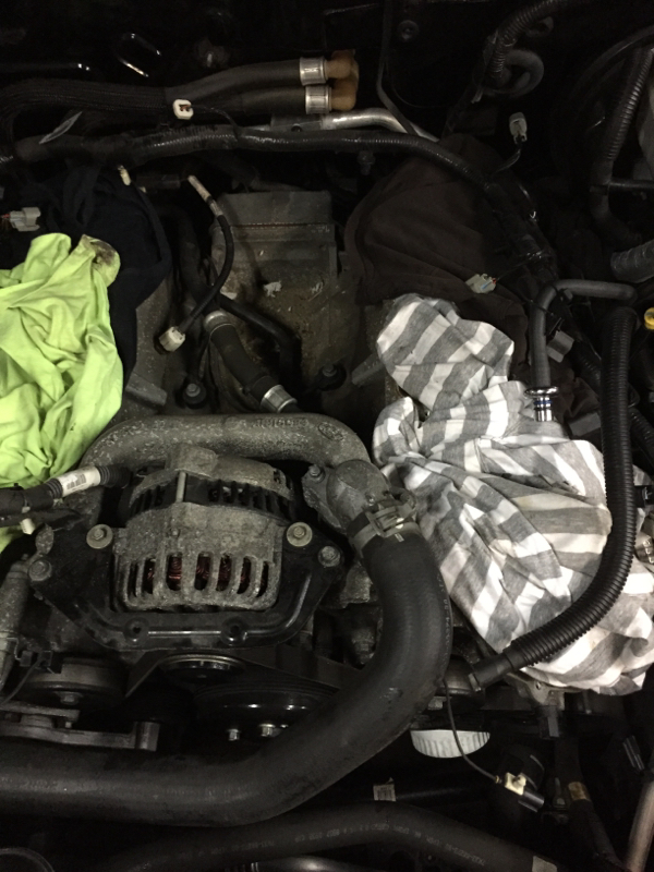 This was the progress point when we stopped teardown a couple weekends ago. Yes, those are old shirts covering the openings...lol. Unfortunately not a heated garage, so we r keeping the moisture out and running the turbo heater while we work.