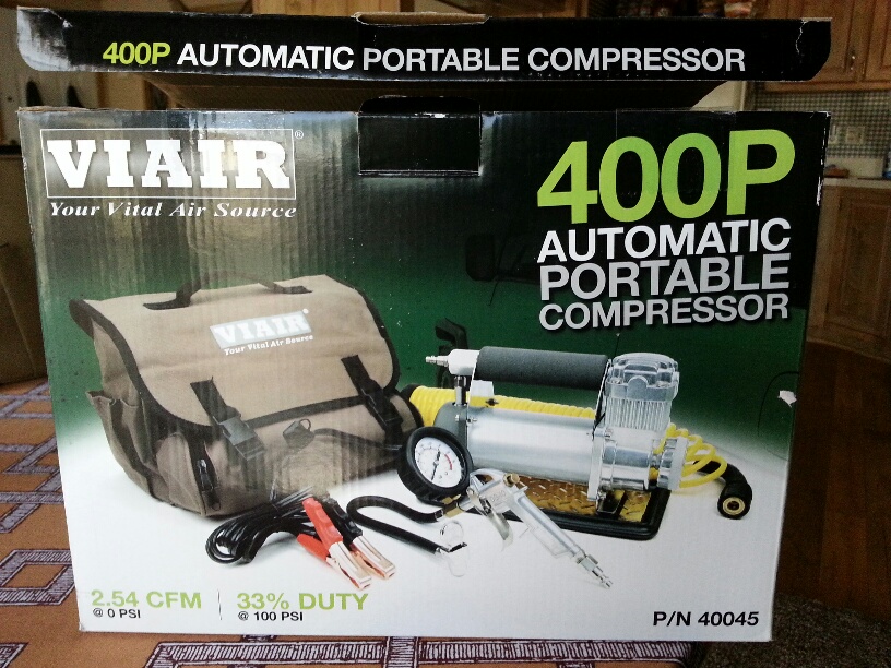 Tested my new VIAIR 400P (pn: 40045) portable air compressor on my neighbors Focus tire and it performed as advertised. Power comes directly from the battery terminals and total weight is 12.6 lbs with it’s carry bag.
