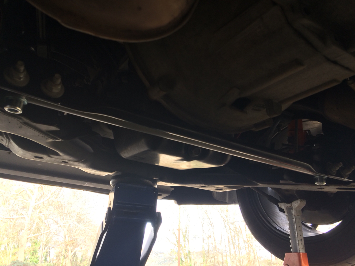 On the highway, cruising along, started hearing a rattling noise from under the car, banging noises when slowing down, any gear, any speed.