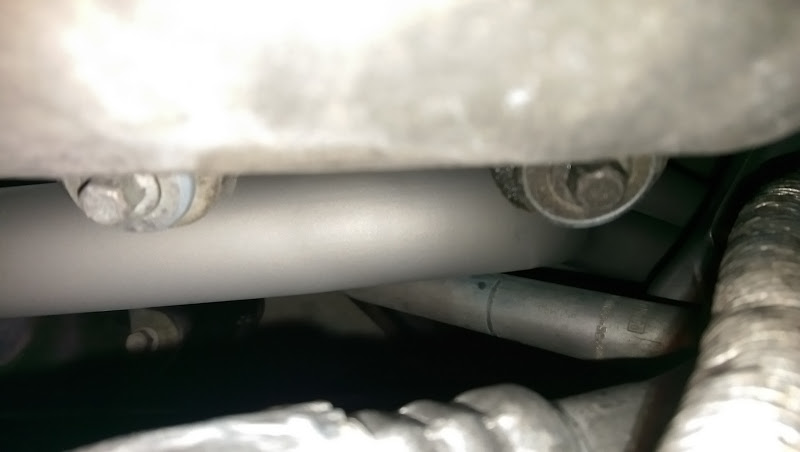 A couple weeks ago I was taking an on-ramp at ludicrous speed (OK...45...) and suddenly felt "DDDDDDdddddDDDDDrrrrrr" in my steering wheel. Felt like engine vibrations and I had a pretty good idea that it was my BRAND NEW headers hitting the steering shaft. Pulled over and sure enough: