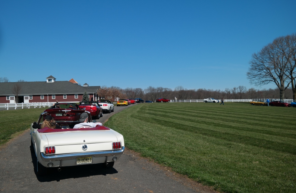 Celebrated National Mustang Day with my club today. Took an hour cruise through the farmlands of northwestern Morris County NJ. We had a convoy of over 50 Mustangs, and ended up at a horse farm/riding stable in Chester NJ for photo ops with, what else....horses!!! The police were notified ahead of time and they stopped traffic at intersections so we could all stay together. It was my first official top-down day of the season. Couldn't have asked for better weather.
