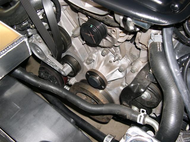 I finally installed the Steeda UDP's today after previously owning 2 other sets and selling them. My buddy CaliHPAddict convinced me to get another set an we put them in today. Cali makes everything look so easy when he does something. It's nice to have a friend who is a great wrench and doesn't mind working on other people's cars. Took us about 45 minutes from start to finish. We didn't remove the fan and seemed to have lots of room. I didn't notice much of an improvement but the car seems to be running pretty strong today anyway.THANKS CALI!!!!