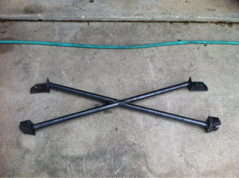 So i was toying around witj the idea of making my own x brace like the one steeda sells...first off i am by no means a good welder so please dont criticize my welds i know they look bad..
