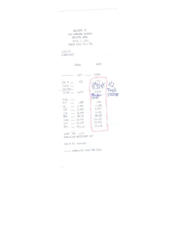 these times are from the season opener at new england dragway it was 53 weather was great.car still has 3.55'sAttachment 23075