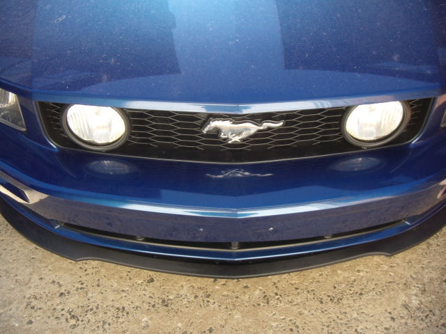 It took roughly 6 hours of fitting and grinding, and fitting, and grinding, and fitting to make it look right. I enlisted a buddy to help with holding it up to the car for fitting until I got it half fastened and centered. While 6 factory holes line up, it required drilling 4 addl holes in the underside of the factory bumper and I am planning on drilling one more in each fender liner as soon as I am happy with the angle of the side "wings" which are somewhat adjustable but without heating them or something which I have not done yet, it is impossible to get them perfectly straight due to the curve in our GT bumpers. I used a mix of factory shelby hardware and standard things.