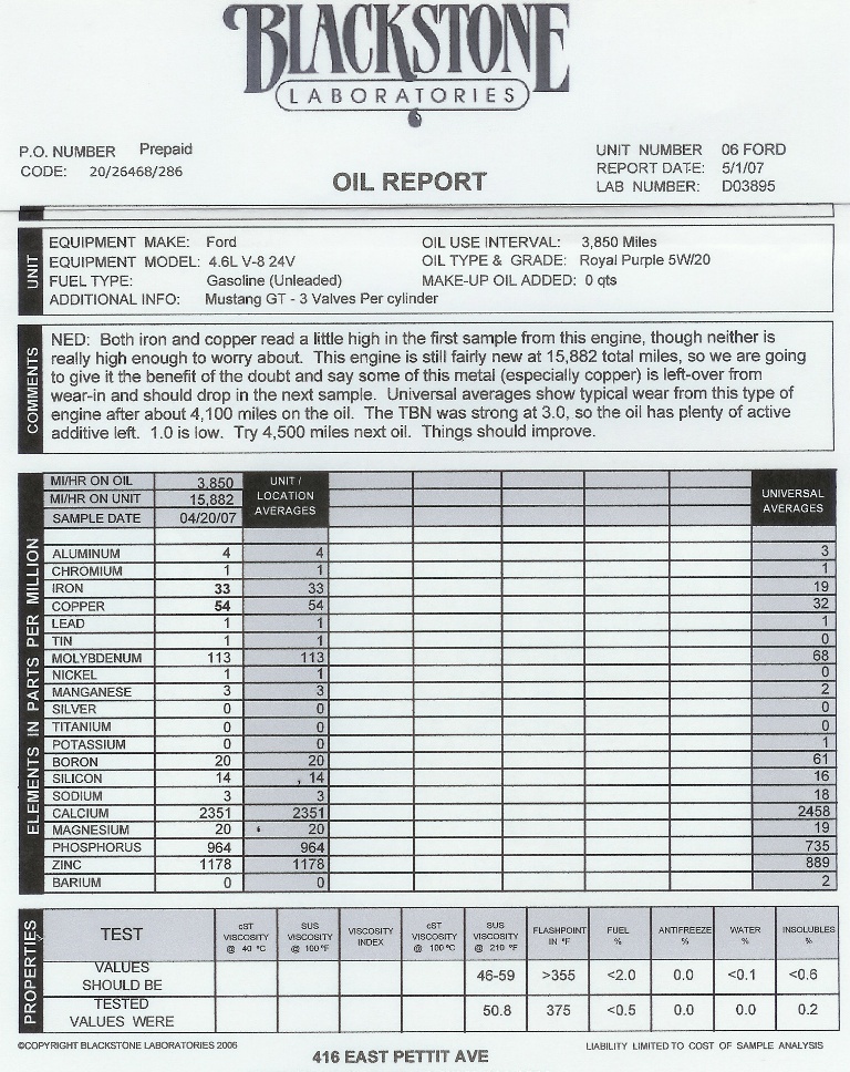 4.) Some metals are part of the additive package, so look to see the report under "Contaminants" before you freak out over levels. Sometimes they're supposed to "be in there".
