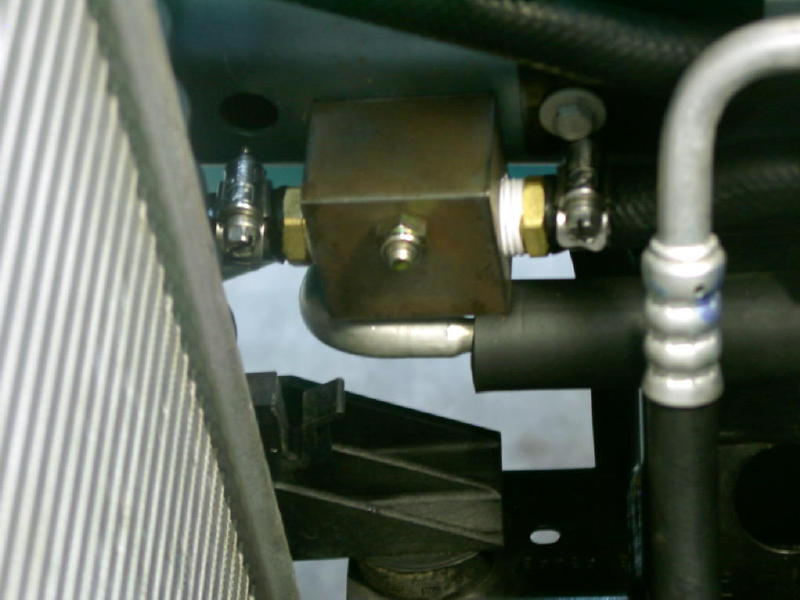 One other item worth mentioning - use 2 pairs of needle nose vise grips to gently crimp the lower trans. cooler hose on each side of the tee you will install and you'll only loose about 2 oz. of trans. fluid.