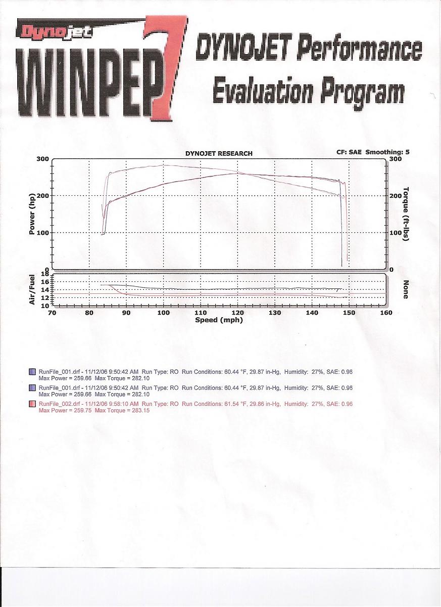 When I have time to get my dynos scaned I will post Major difference in A/f ratios before and after tunes. From what I understand Doug904's tunes are programed to adjust for temp and humidity with the internal computer, ( more technical stuff that I understand). It took 5 pulls to get the a/f corrected and the tune I wanted.