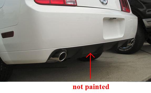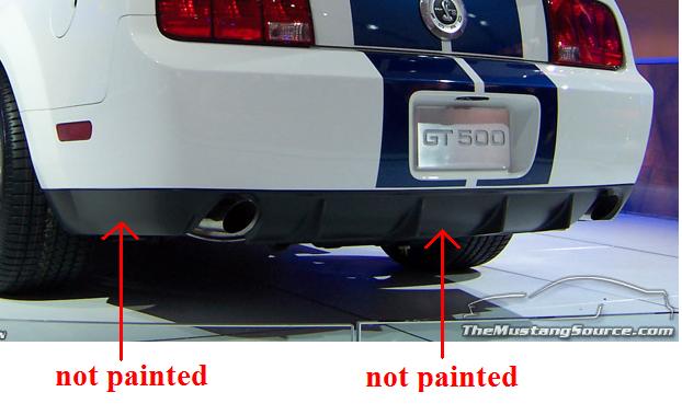 I have that rear fascia and left mine with just the matte black in the center section of the rear. But, there is a line embossed in the fascia that goes around to the wheel wells. I think you can see it in the photo. That part of the fascia below that line can be painted matte black as well. That is the way the GT 500 is painted.