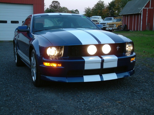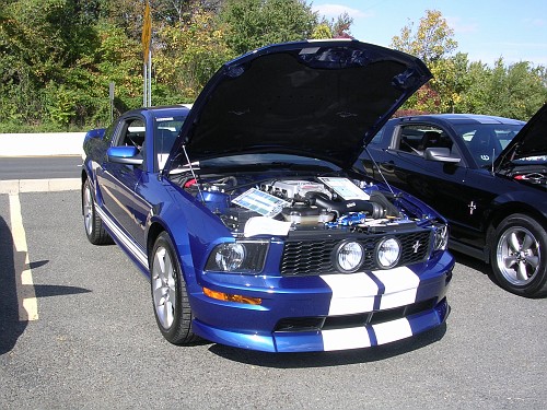 I had been thinking of this mod ever since I got my car. My only dilemma was how bad would it get chipped. Well, I bit the bullet a few weeks ago, and drove down to Mustangtuning.com. Finally got a quick moment before I put it away, to get some pics. My dealer's outside body shop they use did a fantastic job on the spoiler. The stripes are painted and line up perfectly. I now drive very carefully and give myself a good distance between my car and the one infront. Plus, that Blue Painter's Tape is my new best friend. Hope you all like the pics. The last one was from the show I took it too on Sunday. I love the look of my car now.