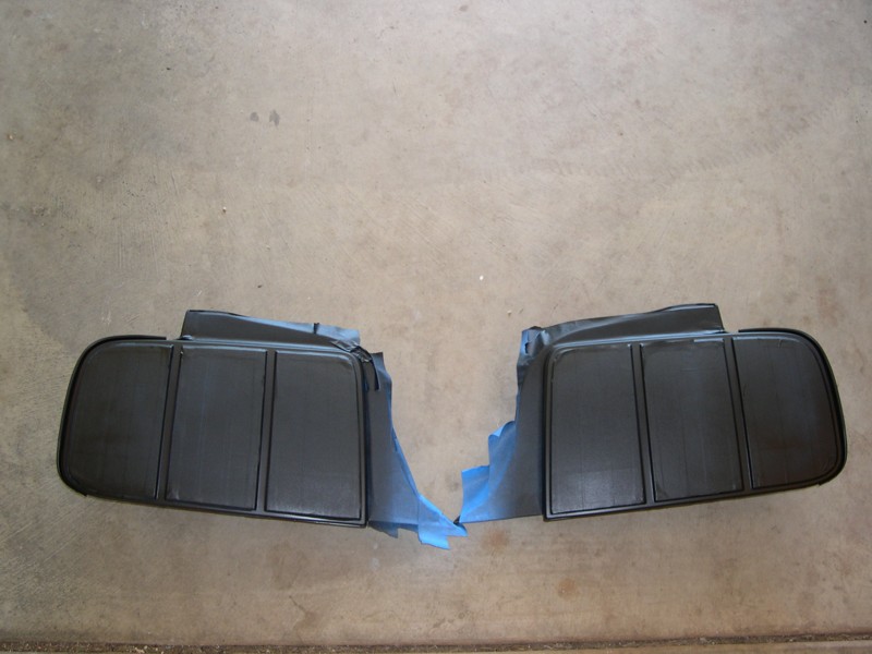 I removed the the tail lights taped them off and sprayed them with flat black paint. I always thought that there should be something to seperate the lenses alittle. Anyway here's the process and after 2 years of painting them they still look like they did that day. BTW, the most time consuming part is taping off the lenses.