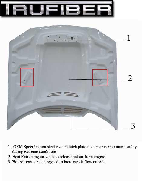 Trufiber also make hoods for Camaro and check out the underside picture. The two red box I marked is for the struts.